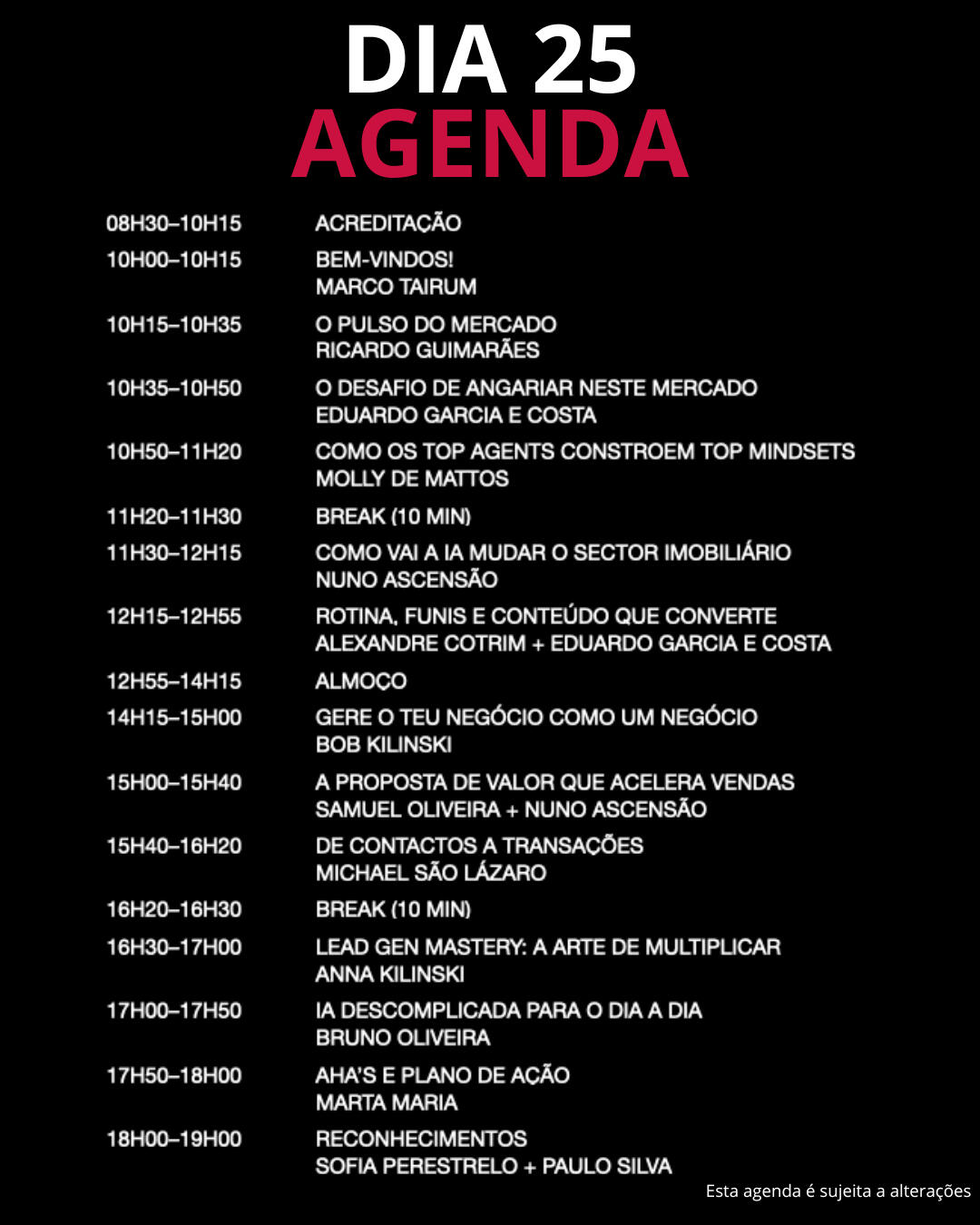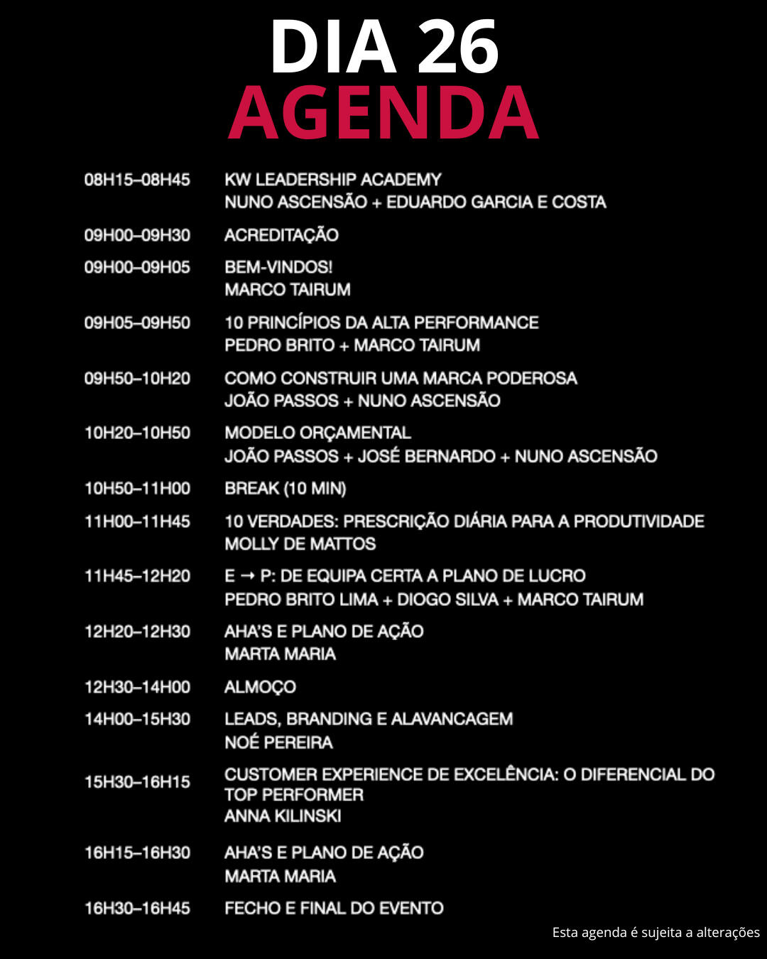 - A violação de regras de conduta da KW Portugal por parte dos consultores não permite acesso ao evento nem reembolso do valor da inscrição.